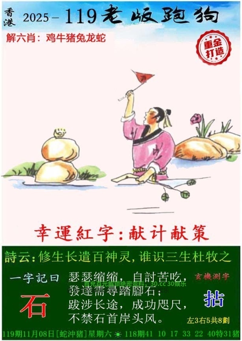 玄机詩雲:窈窕盘门西转路,精禽梦觉仍衔石,幹紧盤圓,立于金雞,財氣高升呒啼;樹要分枝,玄機賜出,久践机衡宣密命。